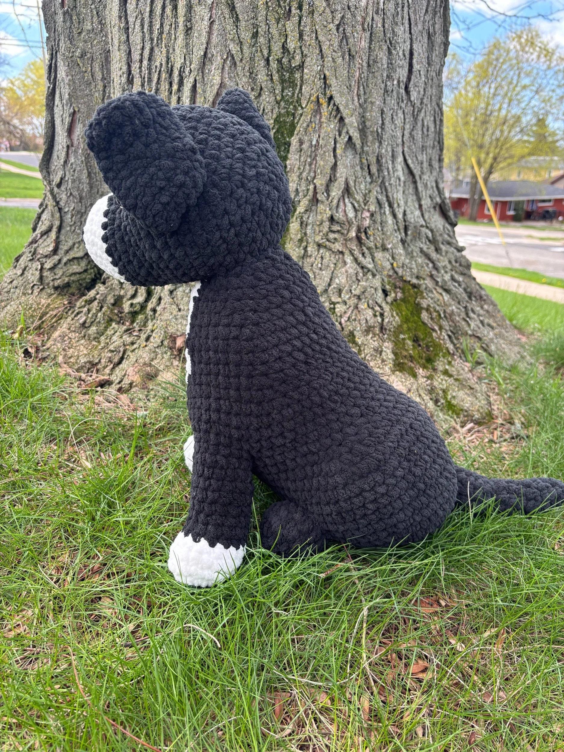 Meet this sweet and loyal handmade crochet dog plushie! With its classic black and white coloring, floppy ears, and soft, cuddly body, this pup is full of charm and ready to become someone’s new favorite companion.